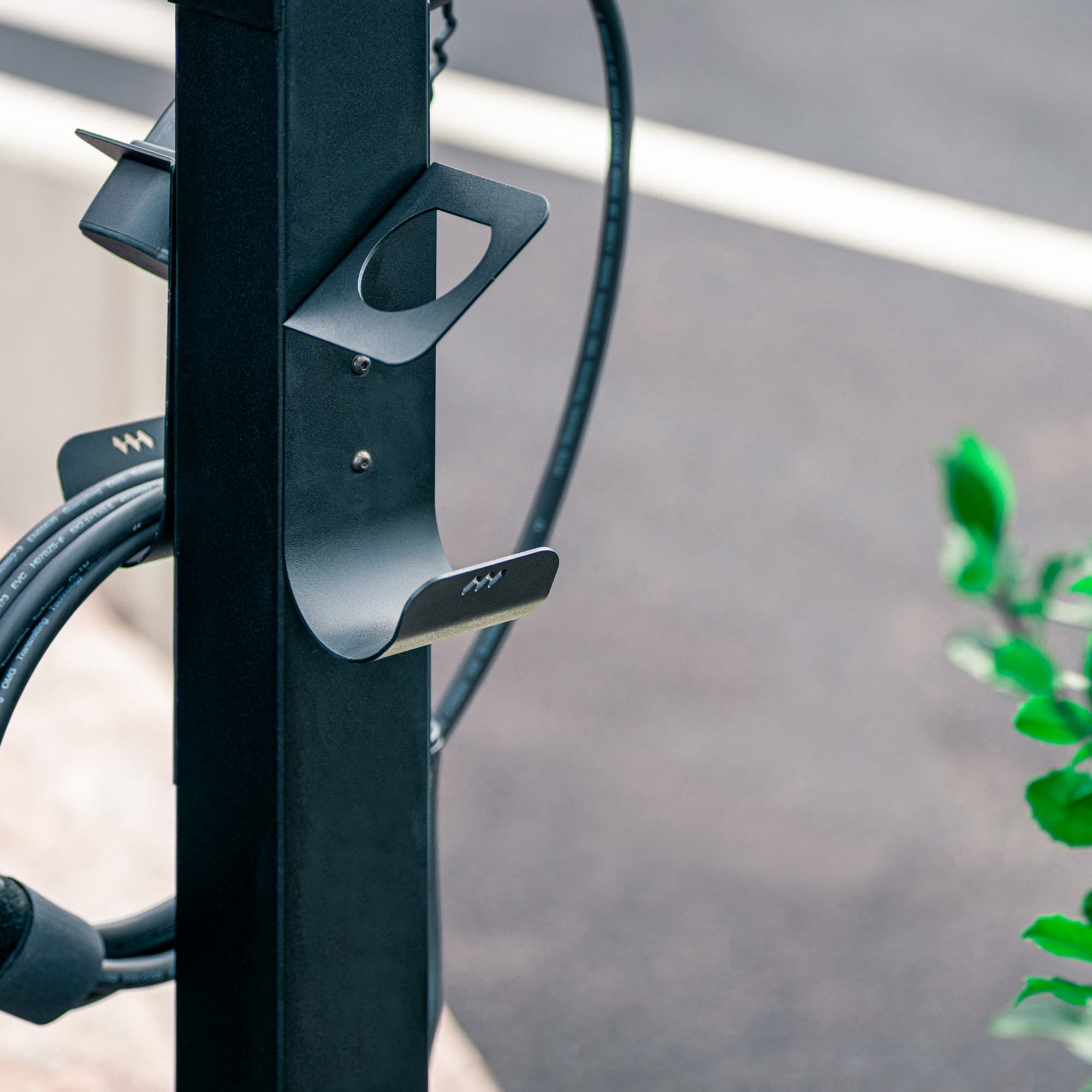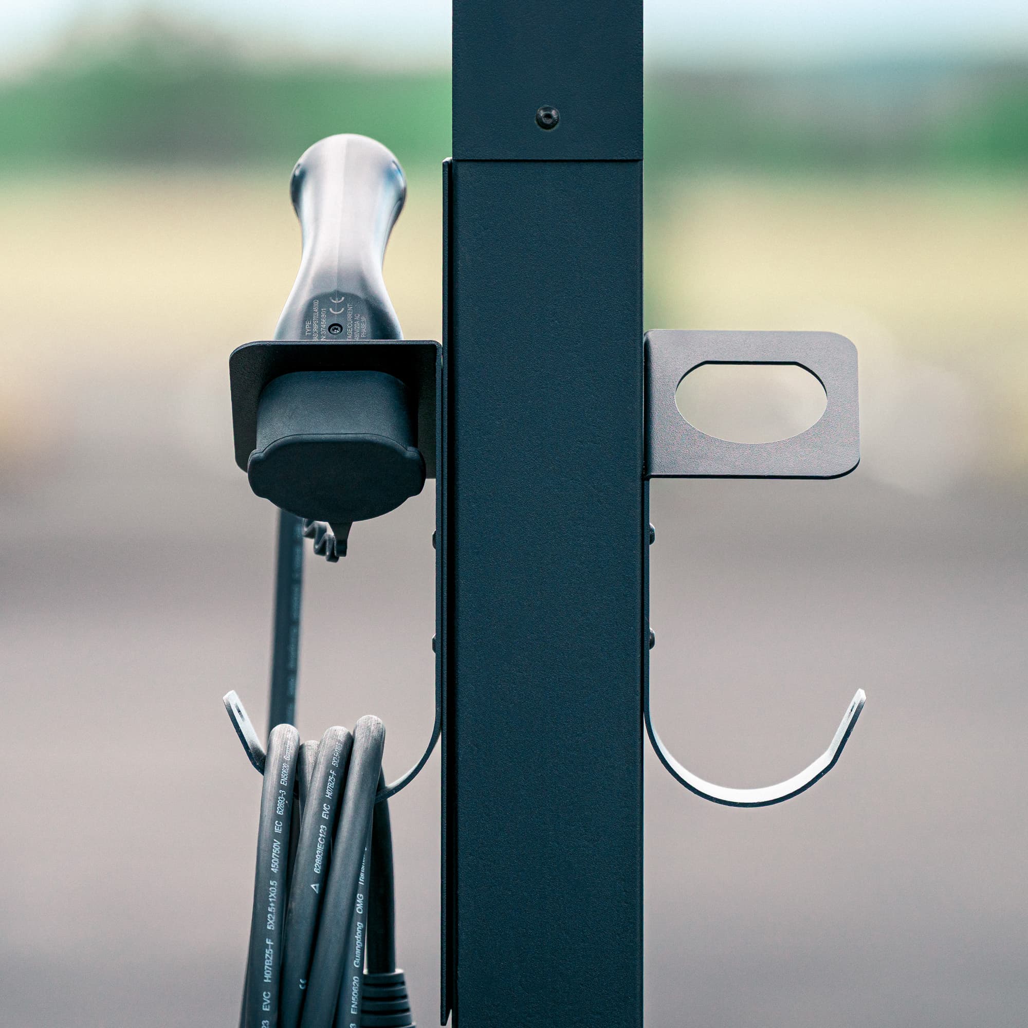 NM Charge Holster ist ein flexibler und praktischer Halter für Ladekabel und Typ-2-Stecker, der ein reibungsloses und organisiertes Laden ermöglicht. Der Halter kann an der NM Charge Post montiert werden, entweder als Einzel- oder Doppelhalterung, oder direkt an der Wand für eine wandmontierte Ladestation. Die robuste Konstruktion gewährleistet Langlebigkeit, und das elegante schwarze Design fügt sich harmonisch in jede Umgebung ein.