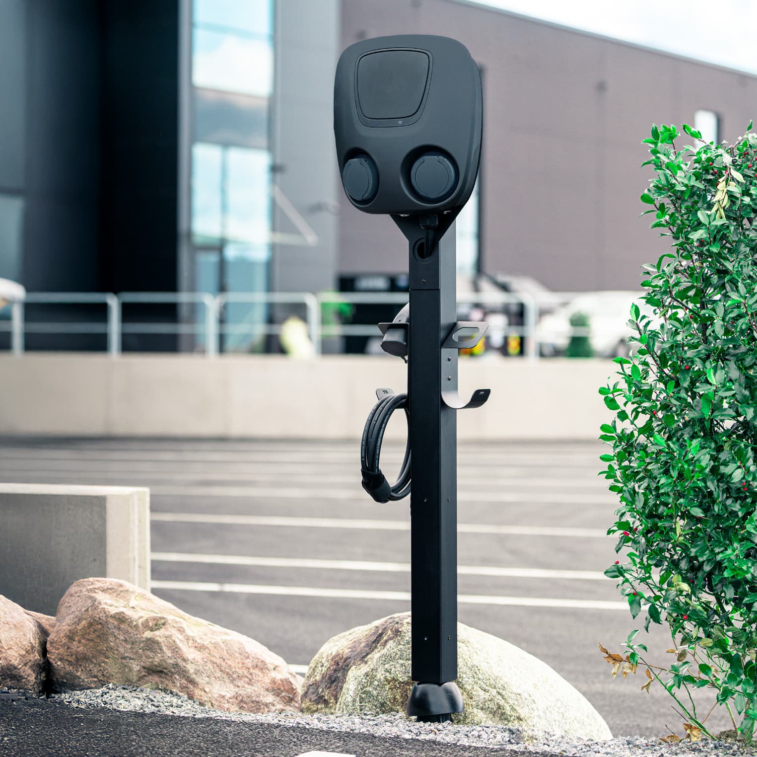 NM Charge Post ist eine flexible Lösung für alle führenden Ladestationen. Sie kann mit einer oder zwei Rückplatten ausgestattet werden, je nachdem, ob sie eine oder zwei Ladestationen tragen soll – diese können unterschiedliche Modelle haben. Die Säule passt zu vorhandenen 60-mm-Rohren und Fundamenten, wird jedoch mit einem neuen Rohr geliefert. Anschlussklemmen-Set (5-LED CU/AL IP23, max. 25 mm²) ist standardmäßig enthalten und erleichtert die Installation zusätzlich. Mit ihrem robusten Design, der hochwertigen Oberfläche und der praktischen Inspektionsöffnung ist die NM Charge Post einfach zu installieren und auf die Anforderungen der Zukunft ausgelegt.